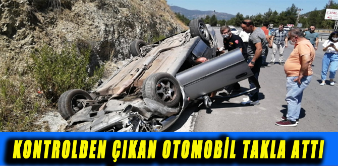KONTROLDEN ÇIKAN OTOMOBİL TAKLA ATTI