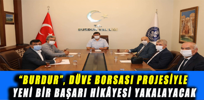 Burdur Valisi Ali Arslantaş başkanlığında, Ticaret Borsası ve Damızlık Sığır Yetiştiricileri Birliği tarafından Burdur’da hayvancılık alanında yapılması düşünülen Düve Borsası Projesi’yle ilgili topla...