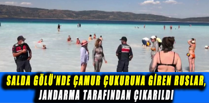 SALDA GÖLÜ’NDE ÇAMUR ÇUKURUNA GİREN RUSLAR, JANDARMA TARAFINDAN ÇIKARILDI