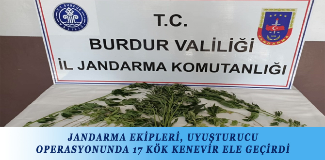 JANDARMA EKİPLERİ, UYUŞTURUCU OPERASYONUNDA 17 KÖK KENEVİR ELE GEÇİRDİ