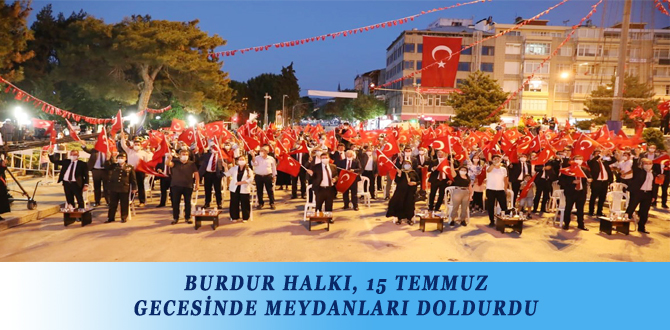 BURDUR HALKI, 15 TEMMUZ GECESİNDE MEYDANLARI DOLDURDU
