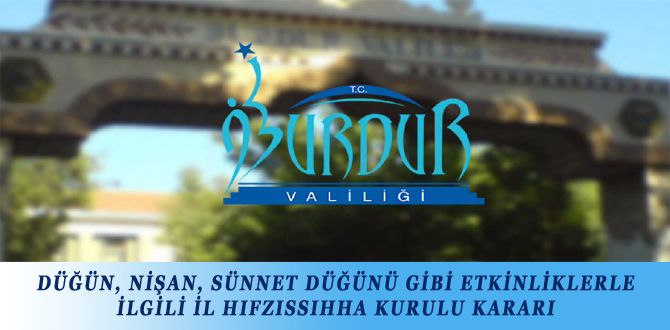 Umumi Hıfzıssıhha Kanunun 23. Maddesine göre, Vali Ali Arslantaş başkanlığında toplanan İl Hıfzıssıhha Kurulu tarafından bazı kararlar aldı. Burdur Valiliği’nden yapılan açıklama ile düğün, nişan, sün...