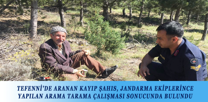 TEFENNİ’DE ARANAN KAYIP ŞAHIS, JANDARMA EKİPLERİNCE YAPILAN ARAMA TARAMA ÇALIŞMASI SONUCUNDA BULUNDU