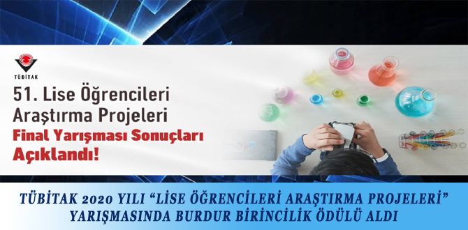 TÜBİTAK 2020 YILI “LİSE ÖĞRENCİLERİ ARAŞTIRMA PROJELERİ” YARIŞMASINDA BURDUR BİRİNCİLİK ÖDÜLÜ ALDI