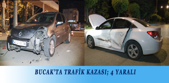 Burdur’un Bucak ilçesinde iki otomobilin çarpışması sonucu meydana gelen trafik kazasında 4 kişi yaralandı. Edinilen bilgilere göre; Kaza Perşembe günü gece saat 23.00 sularında Süleyman Demirel Bulva...