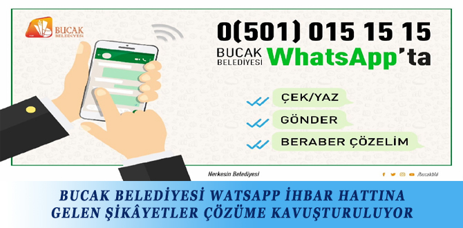 Bucak Belediyesi, vatandaşların istek ve önerilerini aktararak hızlı ve etkin çözüm bulunması adına hayata geçirdiği 0501 015 15 15 WhatsApp İletişim Hattına gelen istek ve önerilerin %90.76’sını çöz...