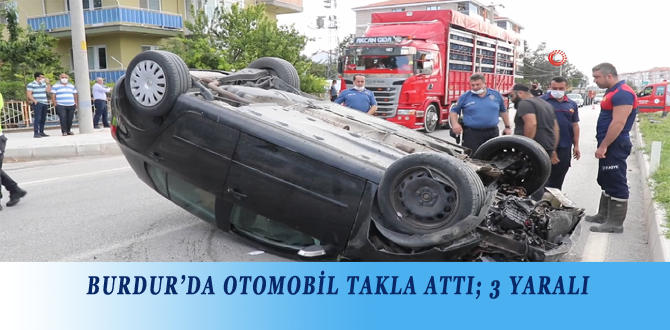 BURDUR’DA OTOMOBİL TAKLA ATTI; 3 YARALI