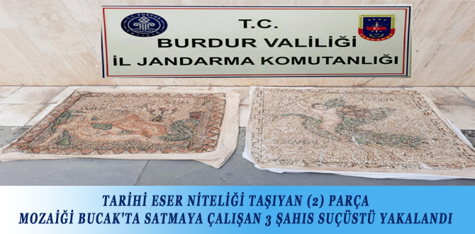 Ellerinde bulunan tarihi eser niteliği taşıyan (2) parça mozaiği Bucak’a getirerek satacakları yönünde duyum alınan duyum üzerine Jandarma ekiplerince gerçekleştirilen operasyonda şüpheli G.A. A...