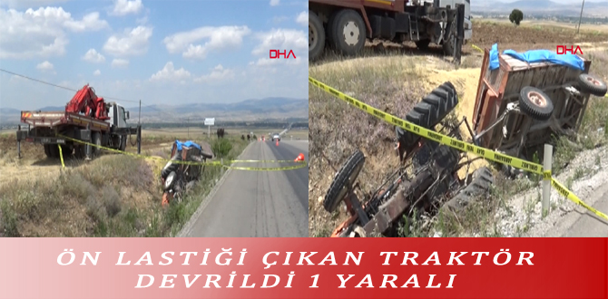 ÖN LASTİĞİ ÇIKAN TRAKTÖR DEVRİLDİ 1 YARALI