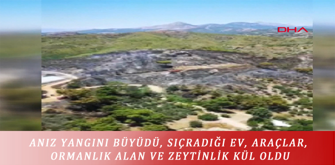 ANIZ YANGINI BÜYÜDÜ, SIÇRADIĞI EV, ARAÇLAR, ORMANLIK ALAN VE ZEYTİNLİK KÜL OLDU