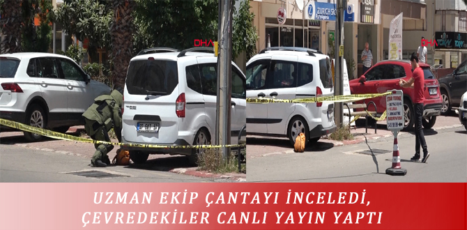 UZMAN EKİP ÇANTAYI İNCELEDİ, ÇEVREDEKİLER CANLI YAYIN YAPTI
