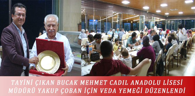 TAYİNİ ÇIKAN BUCAK MEHMET CADIL ANADOLU LİSESİ MÜDÜRÜ YAKUP ÇOBAN İÇİN VEDA YEMEĞİ DÜZENLENDİ