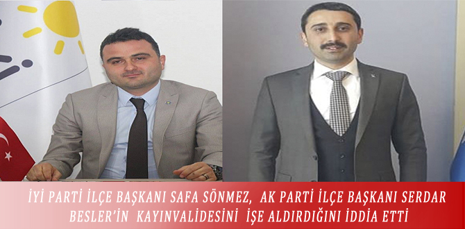 İYİ PARTİ İLÇE BAŞKANI SAFA SÖNMEZ, AK PARTİ İLÇE BAŞKANI SERDAR BESLER’İN KAYINVALİDESİNİ İŞE ALDIRDIĞINI İDDİA ETTİ