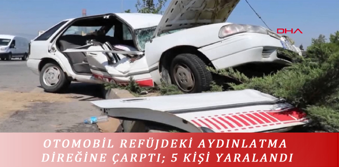 OTOMOBİL REFÜJDEKİ AYDINLATMA DİREĞİNE ÇARPTI; 5 KİŞİ YARALANDI