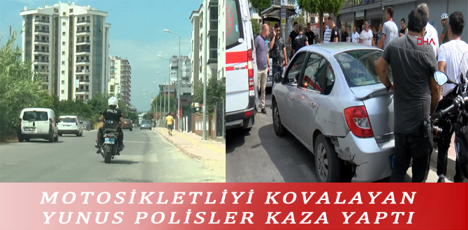 MOTOSİKLETLİYİ KOVALAYAN YUNUS POLİSLER KAZA YAPTI