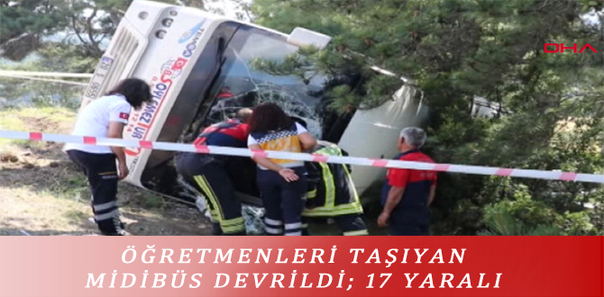 ÖĞRETMENLERİ TAŞIYAN MİDİBÜS DEVRİLDİ; 17 YARALI