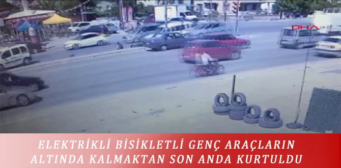 ELEKTRİKLİ BİSİKLETLİ GENÇ ARAÇLARIN ALTINDA KALMAKTAN SON ANDA KURTULDU