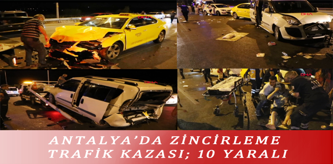 ANTALYA’DA ZİNCİRLEME TRAFİK KAZASI; 10 YARALI