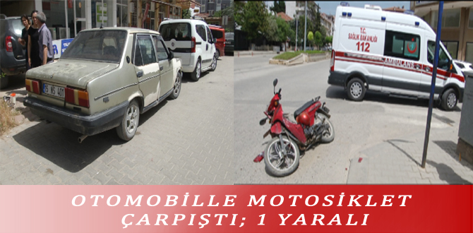OTOMOBİLLE MOTOSİKLET ÇARPIŞTI; 1 YARALI