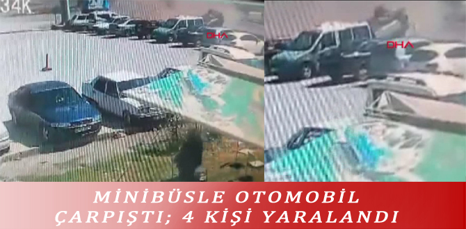 MİNİBÜSLE OTOMOBİL ÇARPIŞTI; 4 KİŞİ YARALANDI