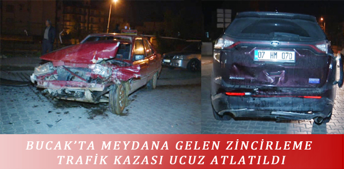 BUCAK’TA MEYDANA GELEN ZİNCİRLEME TRAFİK KAZASI UCUZ ATLATILDI