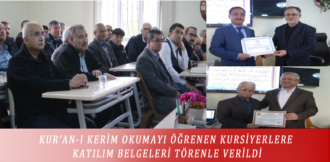 KUR’AN-I KERİM OKUMAYI ÖĞRENEN KURSİYERLERE KATILIM BELGELERİ TÖRENLE VERİLDİ