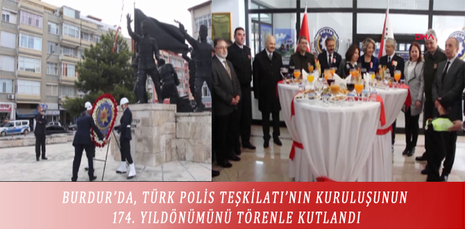 BURDUR’DA, TÜRK POLİS TEŞKİLATI’NIN KURULUŞUNUN 174. YILDÖNÜMÜNÜ TÖRENLE KUTLANDI