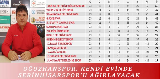 OĞUZHANSPOR, KENDİ EVİNDE SERİNHİSARSPOR’U AĞIRLAYACAK