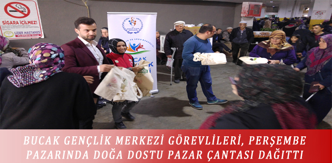 BUCAK GENÇLİK MERKEZİ GÖREVLİLERİ, PERŞEMBE PAZARINDA DOĞA DOSTU PAZAR ÇANTASI DAĞITTI