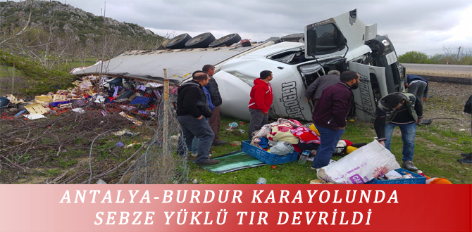 ANTALYA-BURDUR KARAYOLUNDA SEBZE YÜKLÜ TIR DEVRİLDİ