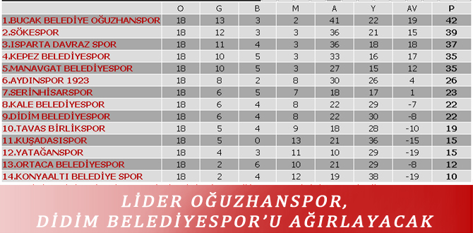 LİDER OĞUZHANSPOR, DİDİM BELEDİYESPOR’U AĞIRLAYACAK