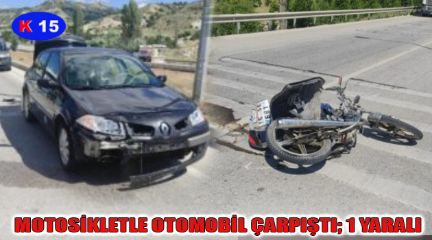 MOTOSİKLETLE OTOMOBİL ÇARPIŞTI; 1 YARALI