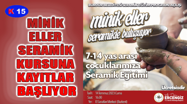 Burdur Belediyesi Seramik Sanat Tasarım Eğitim ve Uygulama Merkezi Atölyesi tarafından ücretsiz düzenlenen çocuklara yönelik “Minik eller Seramikle Buluşuyor” eğitim programı için kayıtlar tekrar başl...