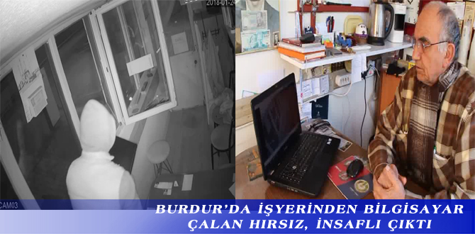 BURDUR’DA İŞYERİNDEN BİLGİSAYAR ÇALAN HIRSIZ, İNSAFLI ÇIKTI