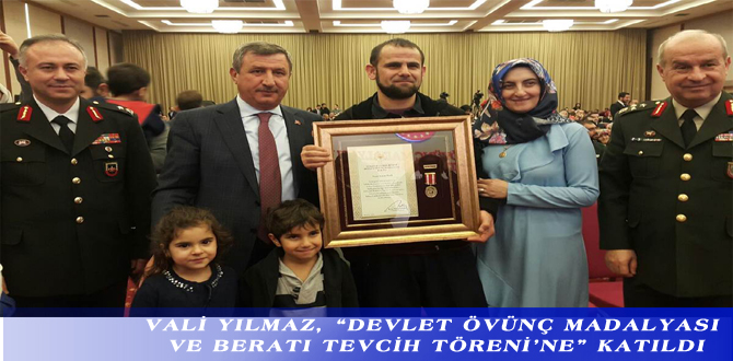 VALİ YILMAZ, “DEVLET ÖVÜNÇ MADALYASI VE BERATI TEVCİH TÖRENİ’NE” KATILDI
