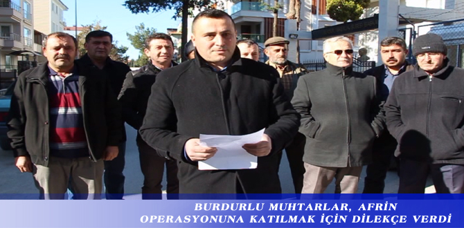 BURDURLU MUHTARLAR, AFRİN OPERASYONUNA KATILMAK İÇİN DİLEKÇE VERDİ