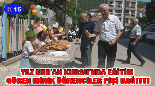 YAZ KUR’AN KURSU’NDA EĞİTİM GÖREN MİNİK ÖĞRENCİLER PİŞİ DAĞITTI