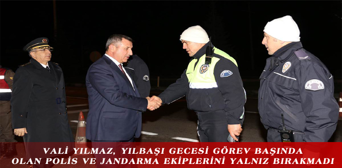 VALİ YILMAZ, YILBAŞI GECESİ GÖREV BAŞINDA OLAN POLİS VE JANDARMA EKİPLERİNİ YALNIZ BIRAKMADI