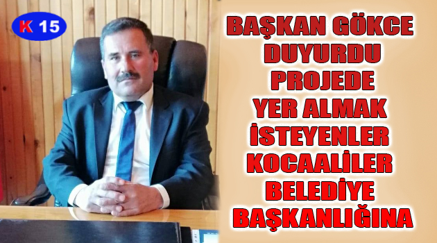 BAŞKAN GÖKCE DUYURDU, PROJEDE YER ALMAK İSTEYENLER KOCAALİLER BELEDİYE BAŞKANLIĞINA