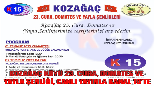 KOZAĞAÇ KÖYÜ 23. CURA, DOMATES VE YAYLA ŞENLİĞİ, CANLI YAYINLA KANAL 15’TE