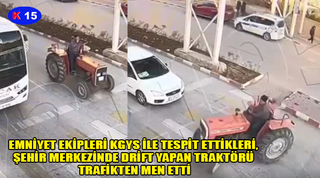 EMNİYET EKİPLERİ KGYS İLE TESPİT ETTİKLERİ, ŞEHİR MERKEZİNDE DRİFT YAPAN TRAKTÖRÜ TRAFİKTEN MEN ETTİ