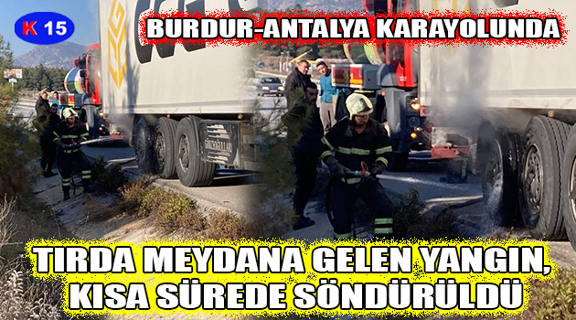 BURDUR-ANTALYA KARAYOLUNDA TIRDA MEYDANA GELEN YANGIN, KISA SÜREDE SÖNDÜRÜLDÜ