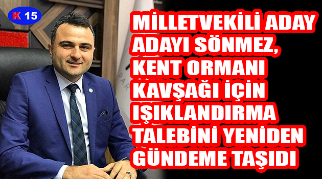 MİLLETVEKİLİ ADAY ADAYI SÖNMEZ, KENT ORMANI KAVŞAĞI İÇİN IŞIKLANDIRMA TALEBİNİ YENİDEN GÜNDEME TAŞIDI