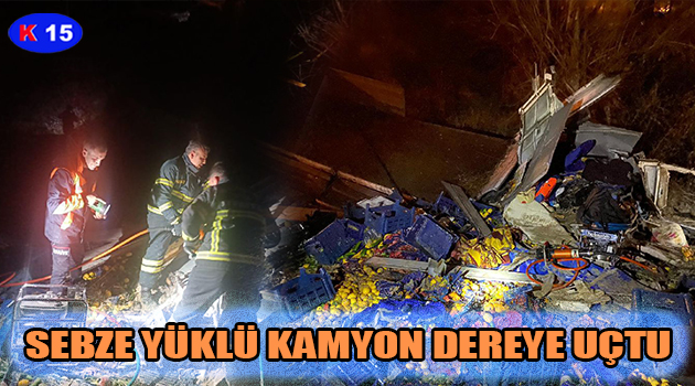 BURDUR’DA SEBZE YÜKLÜ KAMYON DEREYE UÇTU
