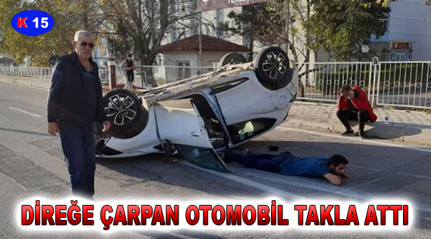 DİREĞE ÇARPAN OTOMOBİL TAKLA ATTI