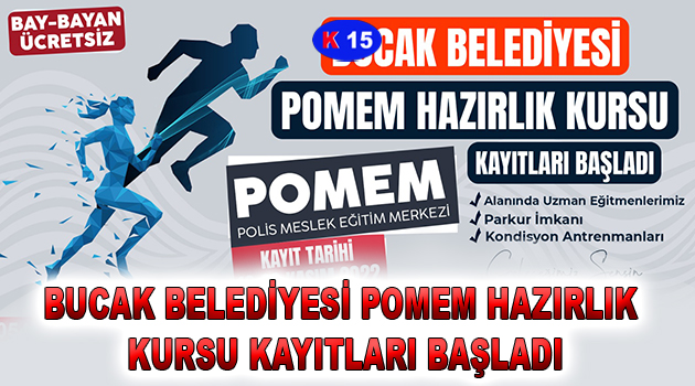 Bucak Belediyesi, Polis Meslek Eğitim Merkezleri (POMEM) Sınavına katılmak isteyen adaylar için ücretsiz parkur hazırlık kurslarının üçüncüsünü düzenleyecek. POMEM kursları için başvuruları 16 Kasım-3...