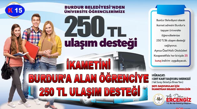 İKAMETİNİ BURDUR’A ALAN ÖĞRENCİYE 250 TL ULAŞIM DESTEĞİ