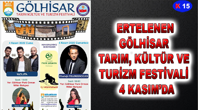 Bartın’ın Amasra ilçesinde 41 madencinin hayatının kaybetmesi nedeniyle ertelenen Gölhisar Tarım, Kültür ve Turizm Festivali 4-5 Kasım tarihlerinde yapılacak. Festivalde, 4 Kasım Cuma günü KOLPA...