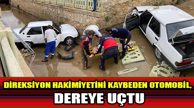 DİREKSİYON HAKİMİYETİNİ KAYBEDEN OTOMOBİL, DEREYE UÇTU