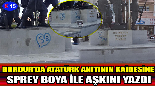 BURDUR’DA ATATÜRK ANITININ KAİDESİNE SPREY BOYA İLE AŞKINI YAZDI
